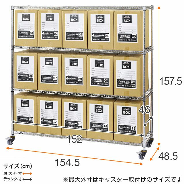 他の画像を見る 交換保証対象品 送料無料 ネット限定 人気アイテム ルミナスレギュラー 幅154.5cm 奥行48.5cm 高さ184cm NLH1518-5GYN2 スチールラック 幅150cm 5段 ルミナスレギュラー 高荷重ウレタンキャスター 幅154.5×奥行48.5×高さ184cm NLH1518-5GYN2 ¥ 46,560 税込