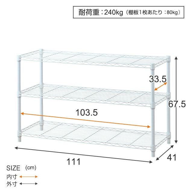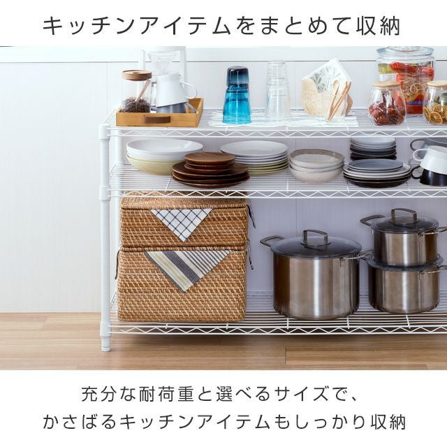 他の画像を見る 交換保証対象品 ネット限定 ルミナスラテ 幅111cm 奥行41cm 高さ67.5cm EHE1170-3WH キッチンラック 幅110cm 3段 ルミナスラテ スチールラック ホワイト 幅111×奥行41×高さ67.5cm EHE1170-3WH ¥ 9,480 税込