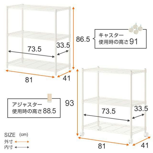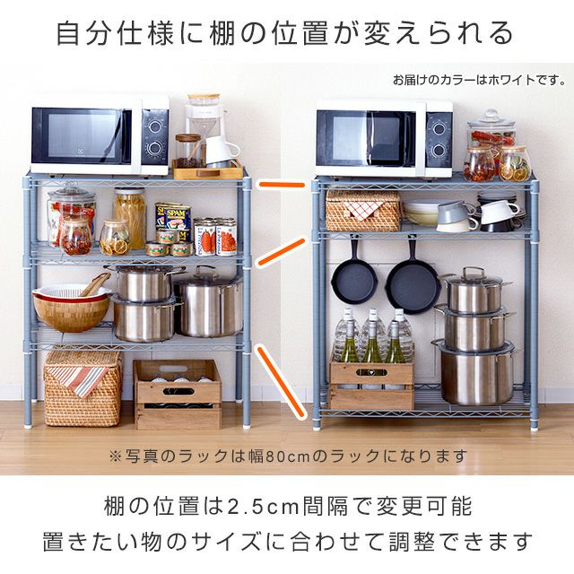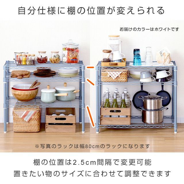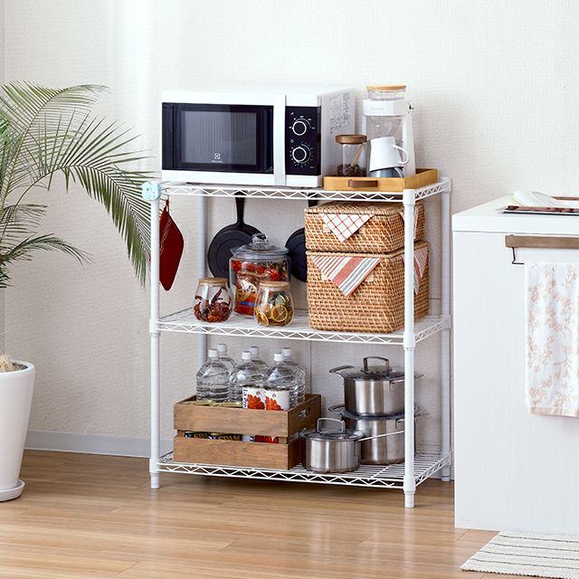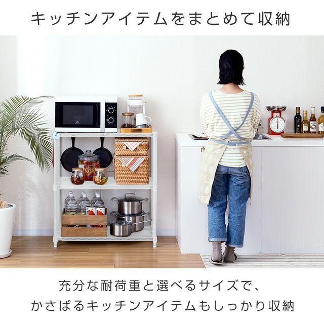 他の画像を見る 交換保証対象品 ネット限定 ルミナスラテ 幅81cm 奥行41cm 高さ67.5cm EHE8070-3WH キッチンラック 幅80cm 3段 ルミナスラテ スチールラック ホワイト 幅81×奥行41×高さ67.5cm EHE8070-3WH ¥ 8,480 税込