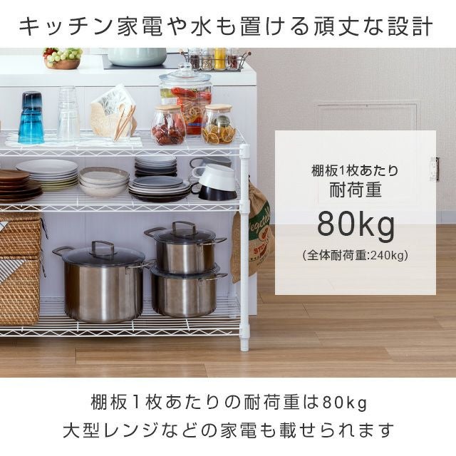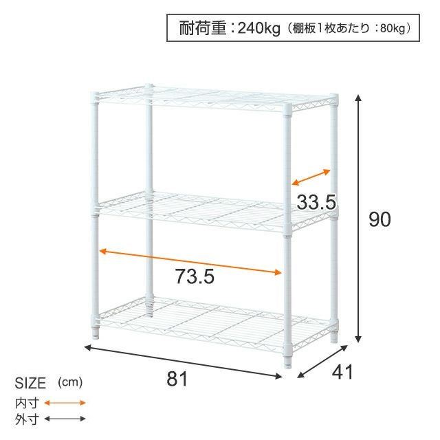 他の画像を見る 交換保証対象品 ネット限定 ルミナスラテ 幅81cm 奥行41cm 高さ90cm EHE8090-3WH キッチンラック 幅80cm 3段 ルミナスラテ スチールラック ホワイト 幅81×奥行41×高さ90cm EHE8090-3WH ¥ 9,480 税込