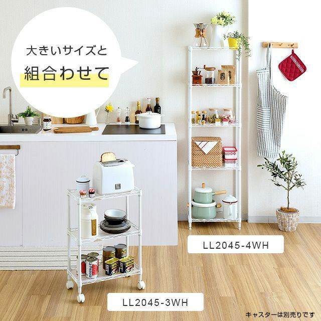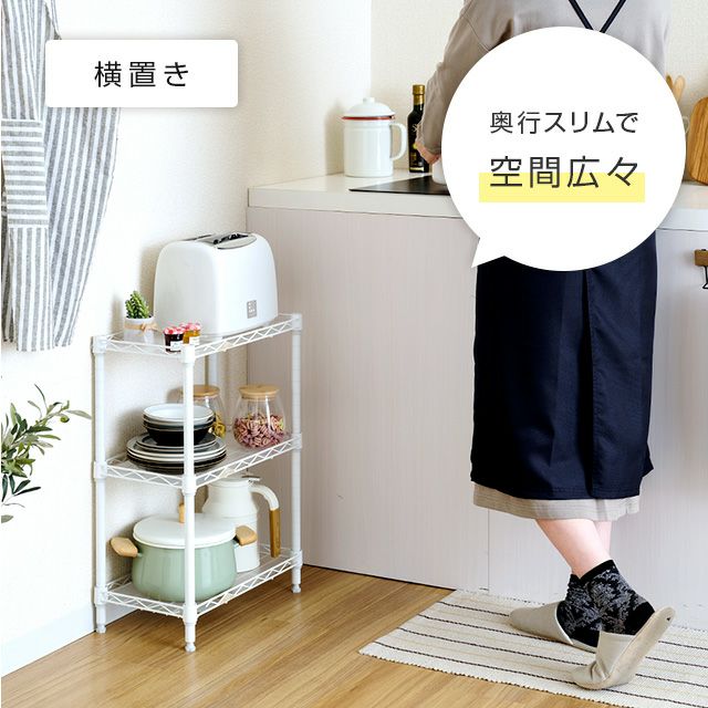 キッチンラック 幅25cm 3段 ルミナスラテ すき間収納ラック 幅24.5×奥行44.5×高さ60cm LL2545-3WH