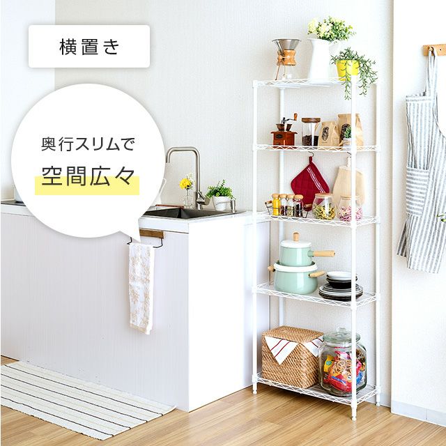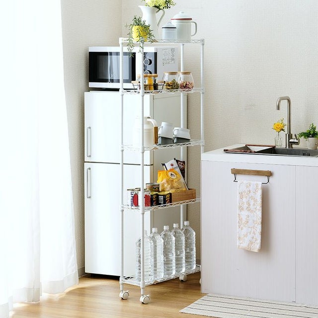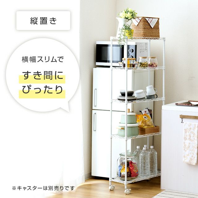 キッチンラック 幅25cm 5段 ルミナスラテ すき間収納ラック 幅24.5×奥行59.5×高さ151.5cm LL2560-5WH