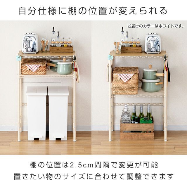 キッチンラック 幅60cm 2段 ルミナスラテ ゴミ箱上 ホワイト 幅61×奥行41×高さ90cm EHE6090-2KWH