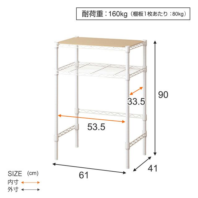 耐荷重(約) ラック全体 160kg
