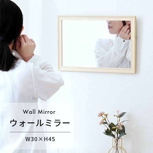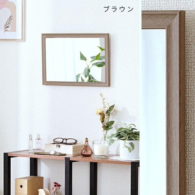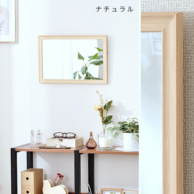 木目調でインテリアにも合わせやすく優しいイメージに♪壁掛けしても、立てかけでも使える軽量でシンプルなミラーです。飛散防止加工がされた安全安心設計。 |