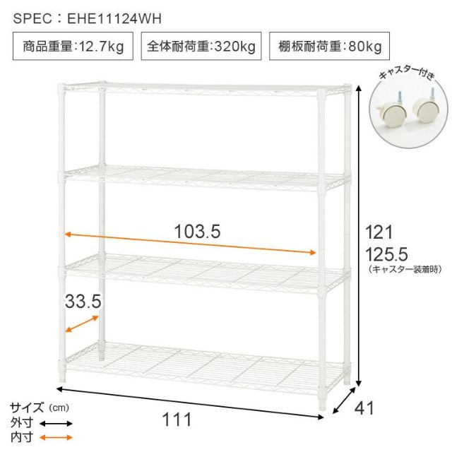 | 幅111×奥行41×高さ121cm キャスター装着時の高さ:125.5cm |