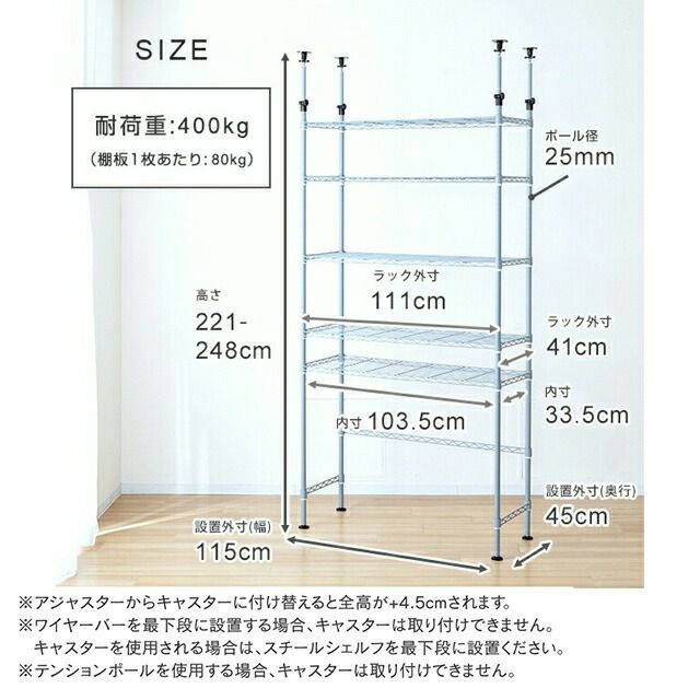 ※製品にキャスターが付属されておりますが、突っ張りを使用の際は不要になります。