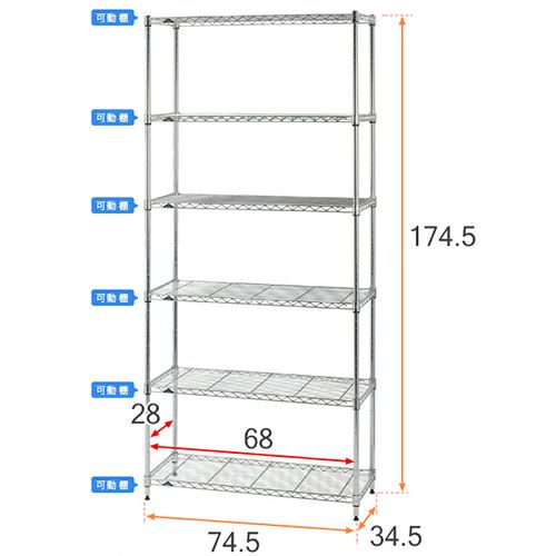 | セット内容 | スチールシェルフ(棚板)×6枚 ポール(分割式)×4本 延長用テンションポール×4本 スリーブ(棚板取付用部品)×24個 円形アジャスター×4個 |