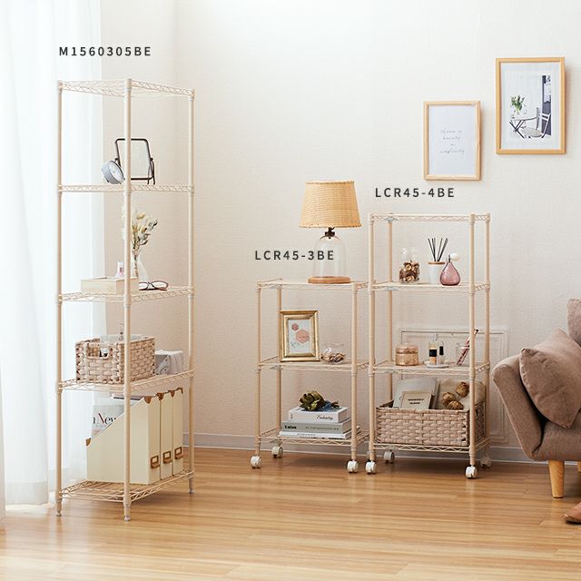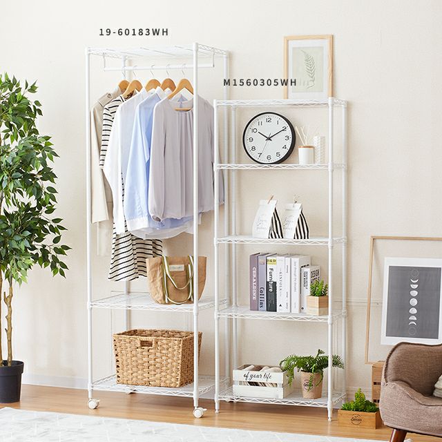 スチールシェルフ(棚板)×5枚 スリーブ(棚取付用部品)×20組(+予備1組) ポール×各4本 標準アジャスター |