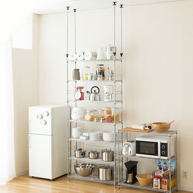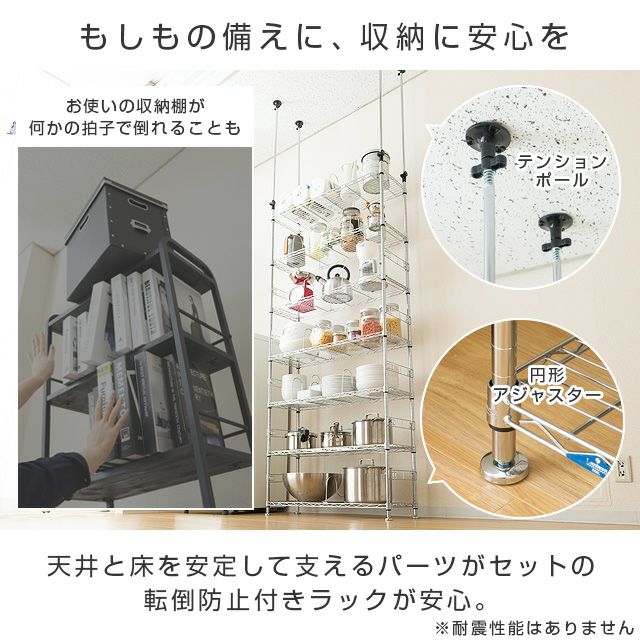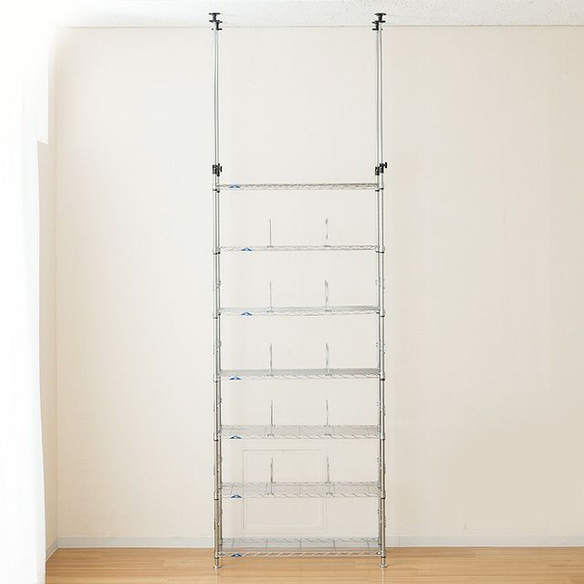 シェルフ、ポール、サポート柵、ディバイダ:スチール(クロームメッキ) スリーブ:ABS樹脂円形 アジャスター:表面 スチール(クロームメッキ) 設置面ポリプロピレン テンション部分:ポリプロピレン、ABS樹脂 |
