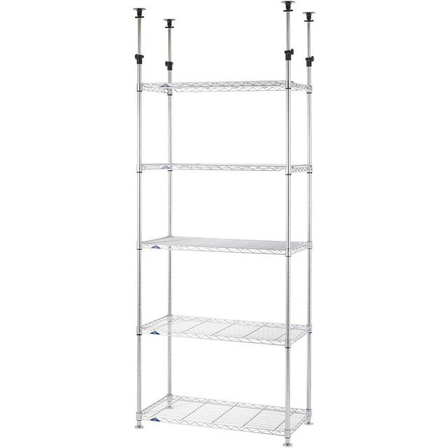 | 材質 | スチールシェルフ(棚板)・ポール:スチール(クロームメッキ) スリーブ:ABS樹脂 テンション部分:ポリプロピレン・ABS樹脂 |