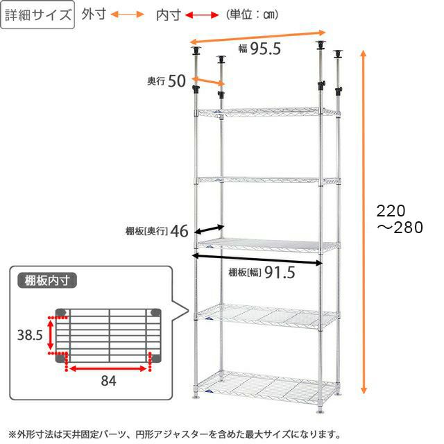 | 外形寸法 | 幅95.5x奥行50x高さ220〜280cm