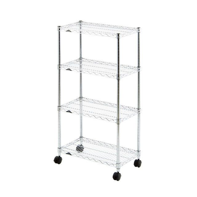 スチールシェルフ(棚板)・ポール:スチール(クロームメッキ) ナイロンキャスター:ナイロン樹脂 スリーブ:ABS樹脂 |