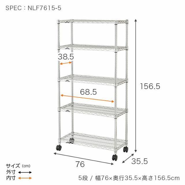 キャスター使用時:幅76×奥行35.5×高156.5cm アジャスター使用時:幅76×奥行35.5×高151cm |
