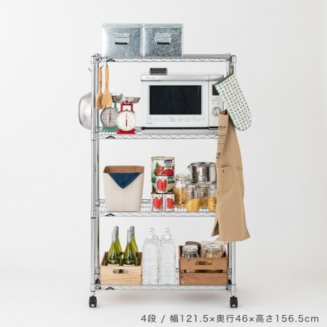 | 材質 | スチールシェルフ(棚板)・ポール:スチール(クロームメッキ) ナイロンキャスター:ナイロン樹脂 スリーブ:ABS樹脂 |