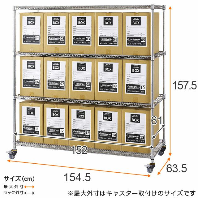 ラック外寸:幅152×奥行61×高さ157.5cm |