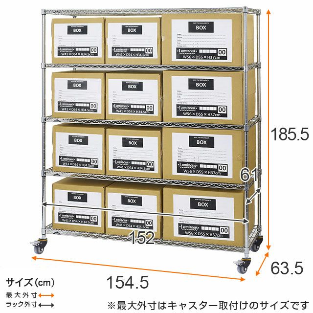 ラック外寸:幅152×奥行61×高さ185.5cm |