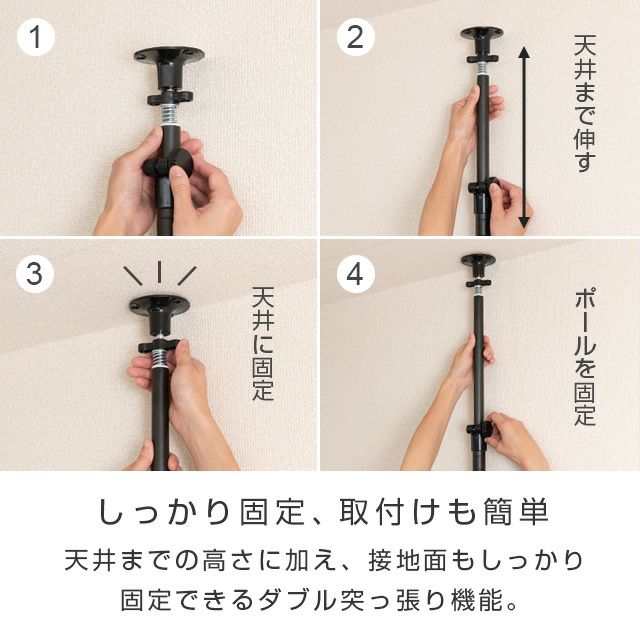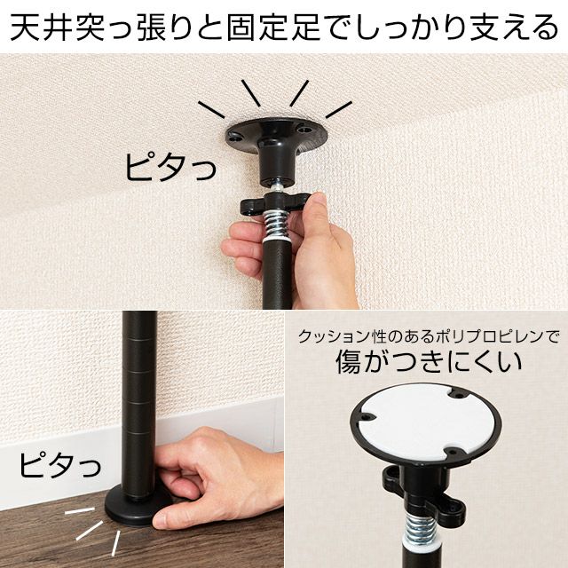 テンションポールの天井取付けでネジ止めが可能です。その際はプラスドライバーをご用意ください。 |