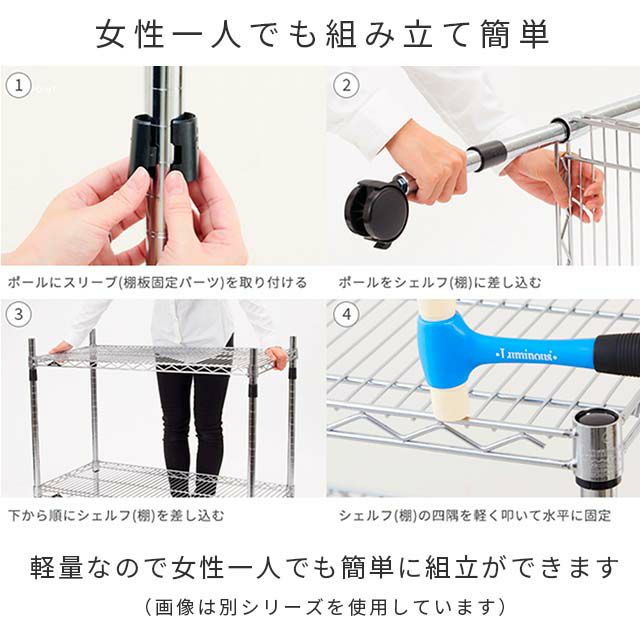 材質 シェルフ(棚)・ポール:スチール(クロームメッキ)、スリーブ:ABS樹脂
