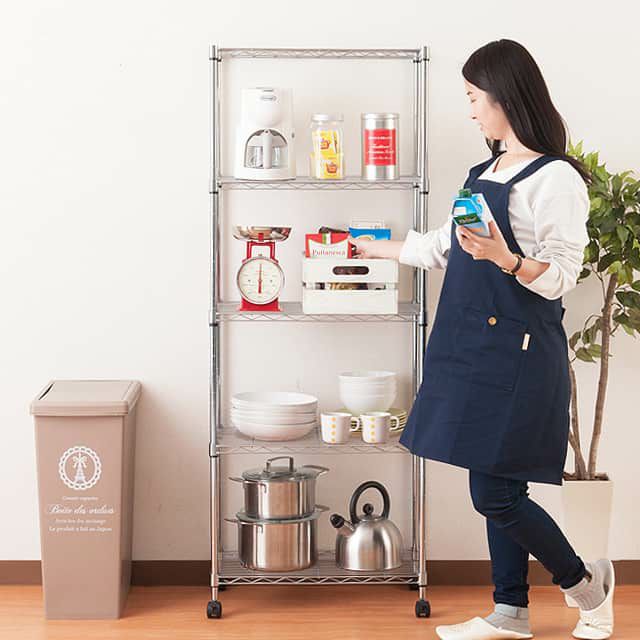 オフィスの備品や書類をひとまとめ。スチールラックは、スペースに合わせて選べる豊富なサイズで無駄なく配置。ディバイダやサポート柵など拡張パーツも充実し、分類・落下防止で使い勝手アップ。棚の高さ調整やキャスター追加で、収納も移動もスマートに。