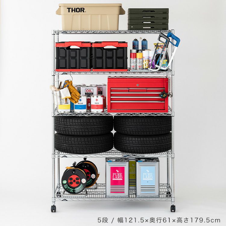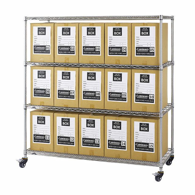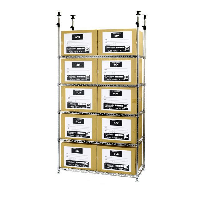 オフィスの備品や書類をひとまとめ。スチールラックは、スペースに合わせて選べる豊富なサイズで無駄なく配置。ディバイダやサポート柵など拡張パーツも充実し、分類・落下防止で使い勝手アップ。棚の高さ調整やキャスター追加で、収納も移動もスマートに。
