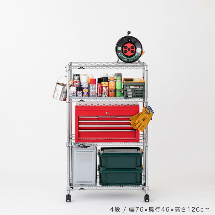 オフィスの備品や書類をひとまとめ。スチールラックは、スペースに合わせて選べる豊富なサイズで無駄なく配置。ディバイダやサポート柵など拡張パーツも充実し、分類・落下防止で使い勝手アップ。棚の高さ調整やキャスター追加で、収納も移動もスマートに。