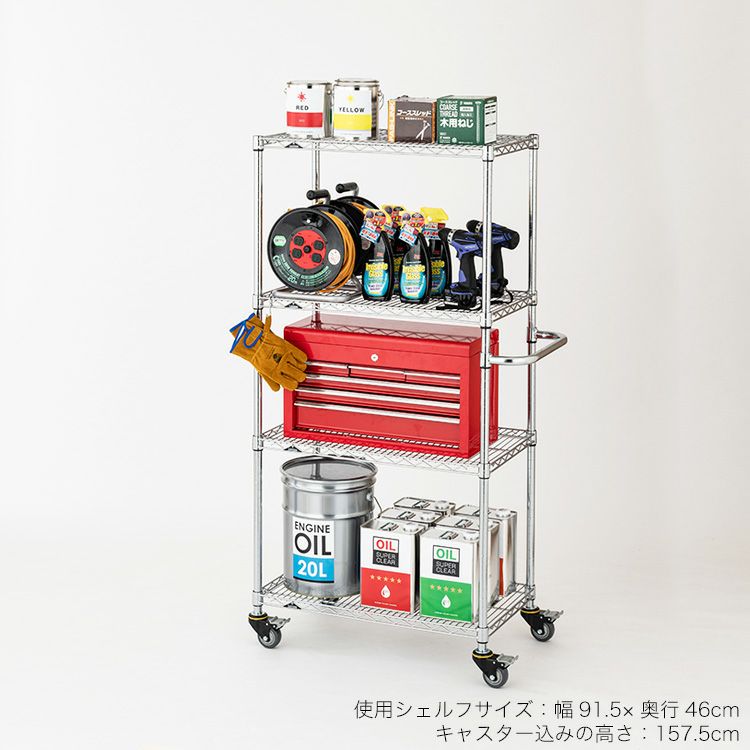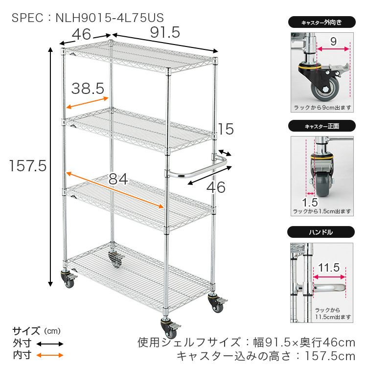 他の画像を見る NEW 交換保証対象品 送料無料 ワゴンラック 幅90cm 4段 スチールラック カートワゴン ルミナスレギュラー 幅91.5×奥行46×高さ157.5cm NLH9015-4L75US ¥ 22,800 税込 カートに入れる