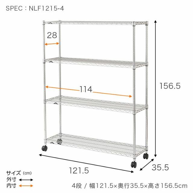 キャスター使用時:幅121.5×奥行35.5×高156.5cm