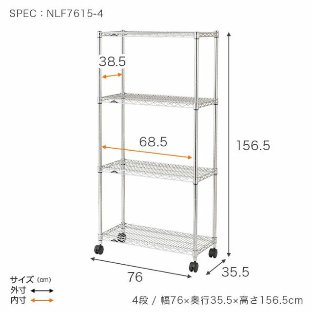 キャスター使用時:幅76×奥行35.5×高156.5cm