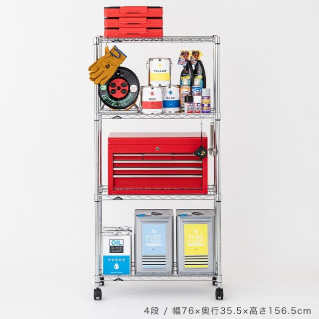 スチールシェルフ(棚板)・ポール:スチール(クロームメッキ)