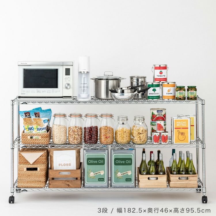 他の画像を見る NEW 交換保証対象品 送料無料 ネット限定 スチールラック 幅180cm 3段 ルミナスレギュラー 幅182.5×奥行61×高さ73cm NLK1867-3 ¥ 38,800 税込 カートに入れる