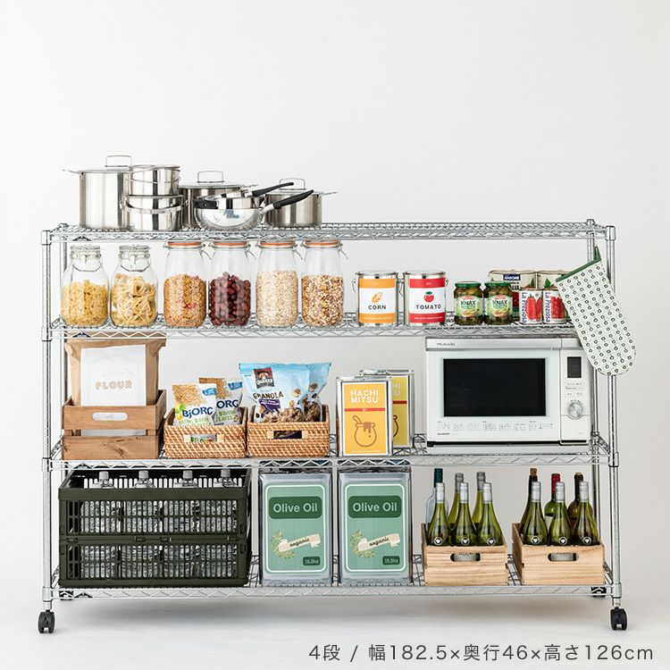 他の画像を見る NEW 交換保証対象品 送料無料 ネット限定 スチールラック 幅180cm 4段 ルミナスレギュラー 幅182.5×奥行46×高さ126cm NLH1812-4 ¥ 31,800 税込 カートに入れる