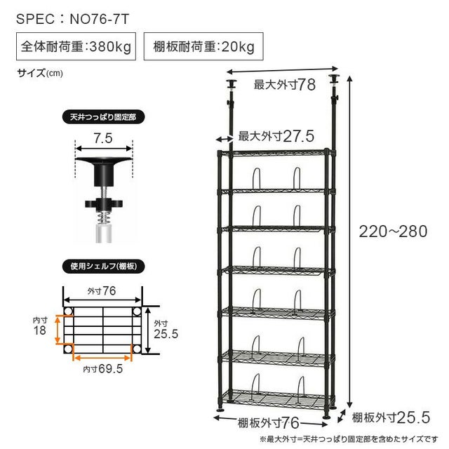 幅78×奥行27.5×高さ220~280cm |
