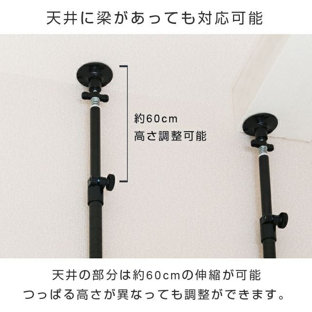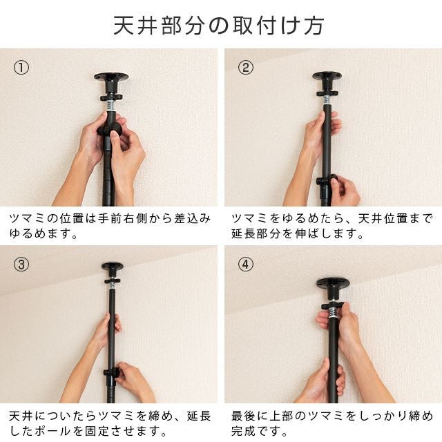 テンションポールの天井取付けでネジ止めが可能です。その際はプラスドライバーをご用意ください。