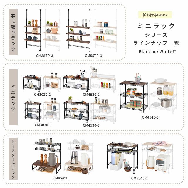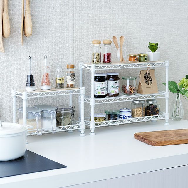 他の画像を見る 【アウトレット品】 キッチンラック 幅45cm 3段 ホワイト スチールラック シート付 幅45.5×奥行12.5×高さ31cm CM4530-3WH ¥ 3,480 のところ ¥ 1,980 税込 在庫切れ 詳細を見る