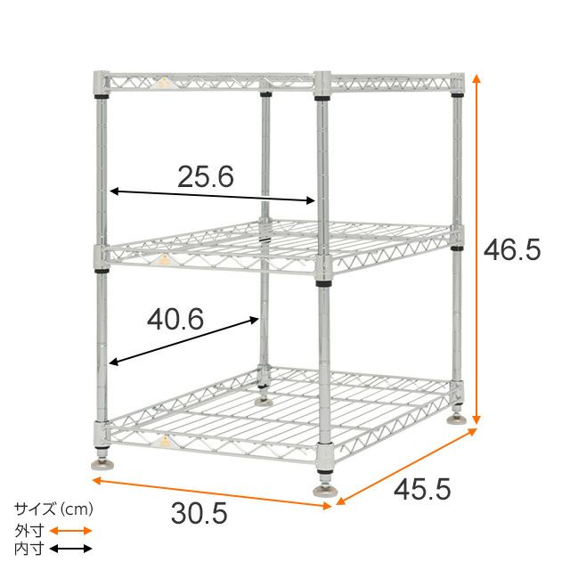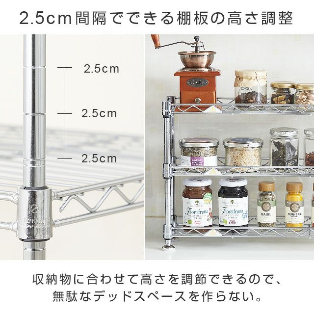 シェルフ(棚)・ポール:スチール(クロームメッキ) スリーブ:ABS樹脂 |
