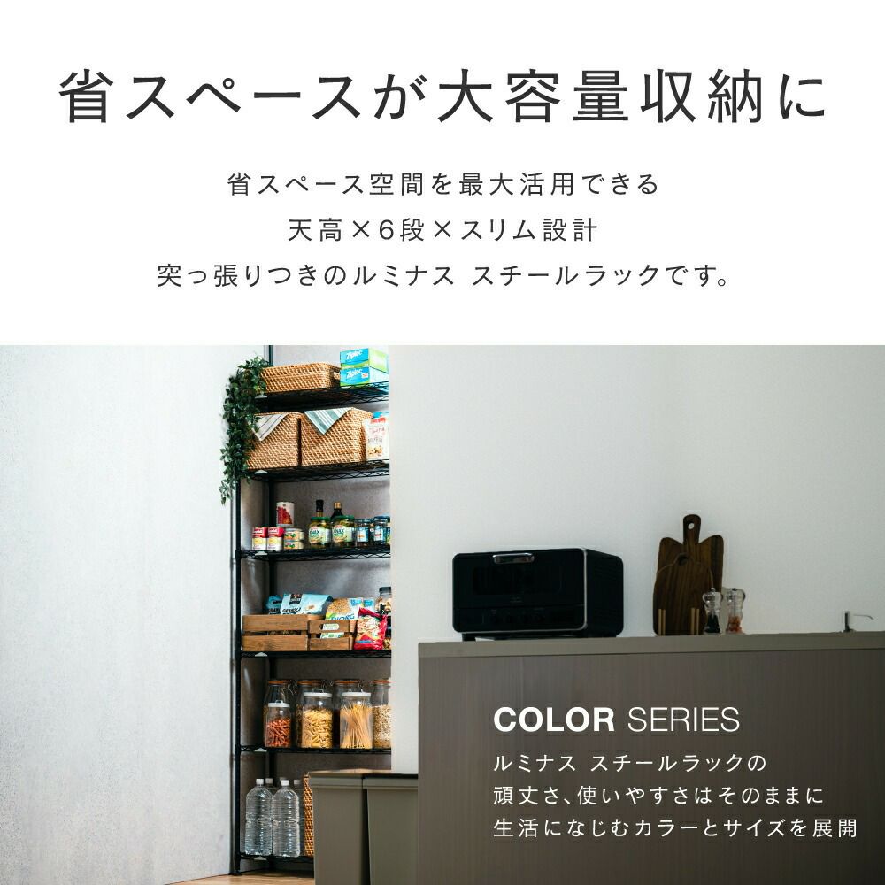 他の画像を見る NEW 交換保証対象品 突っ張りラック 幅45cm 6段 ルミナスカラー スチールラック 幅47.5×奥行31.5×高さ220-280cm M45-6TBK ¥ 8,800 税込 カートに入れる