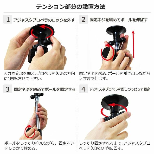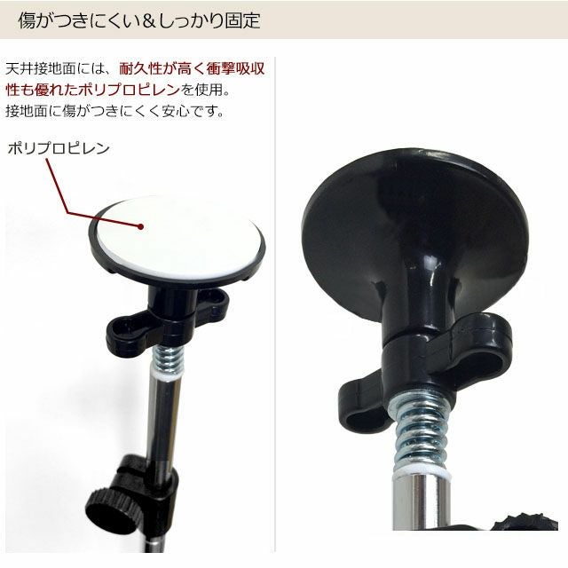| 備考 | ・ルミナス 25mmポール専用パーツと完全互換 ・テンション使用時は天井に張りのある部分に設置してください。 ・テンション使用時は円形アジャスタのご使用をお薦め致します。 |