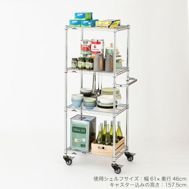 (棚板のみ)幅61×奥行46×高157.5cm (ハンドル含む)幅72.5×奥行46×高157.5cm |