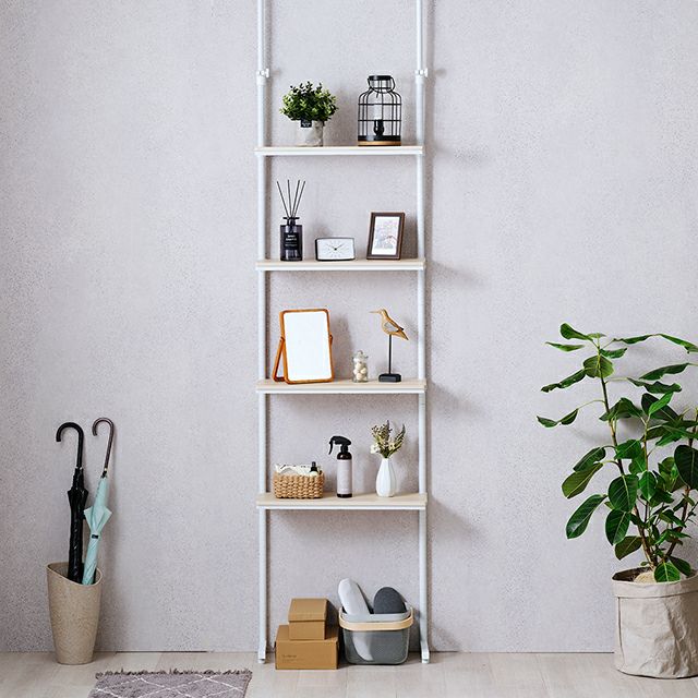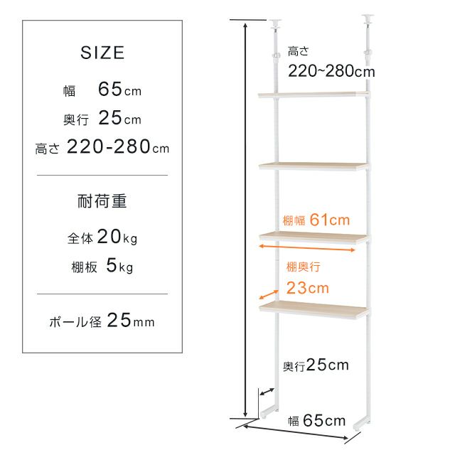 壁面突っ張りラック 幅60cm 4段 ルミナスラテ スチールラック 幅65×奥行25×高さ220-280cm LL60-4HT