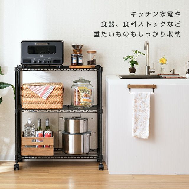 他の画像を見る 交換保証対象品 ネット限定 スチールラック 幅60cm 3段 ルミナスノワール フリーラック 幅61×奥行41×高さ94.5cm NO6090 ¥ 8,980 税込 〜 ¥ 税込 詳細を見る