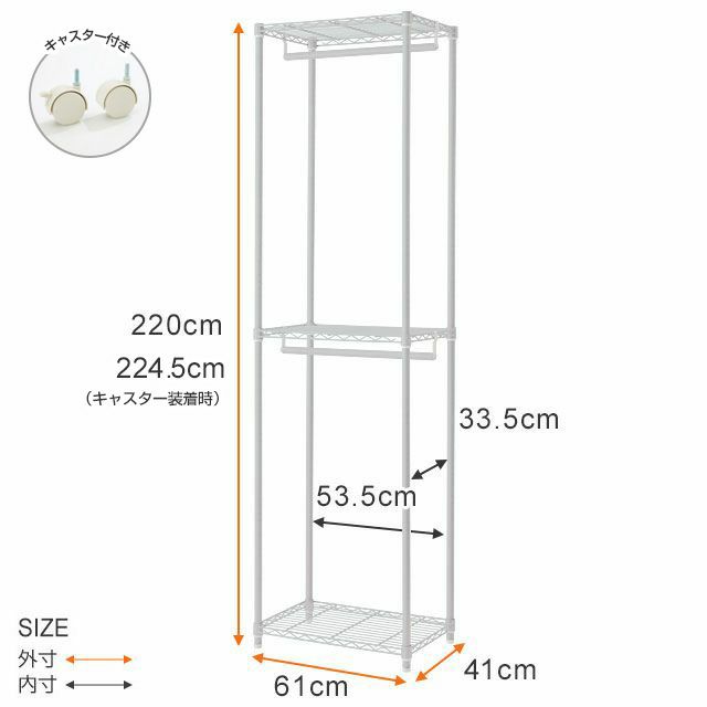 幅61×奥行41×高さ220cm キャスター装着時の高さ:224.5cm |