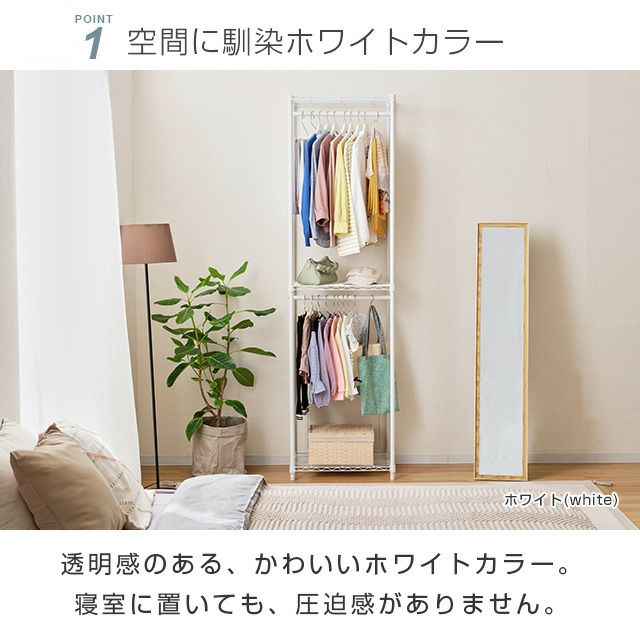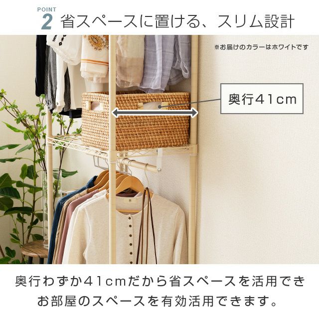 シェルフ(棚板)・ポール・ワイヤーバー・ハンガーポール:スチール スリーブ:ABS樹脂 |