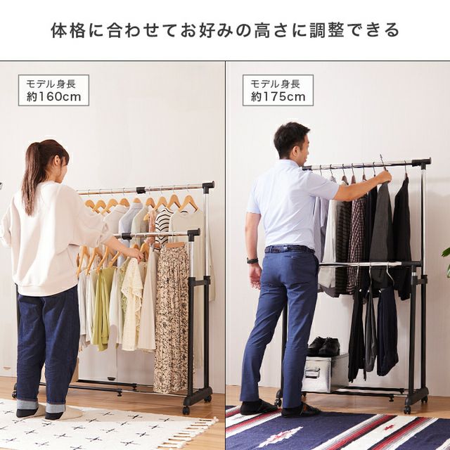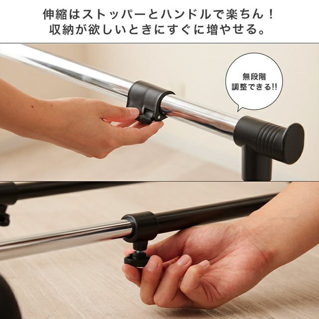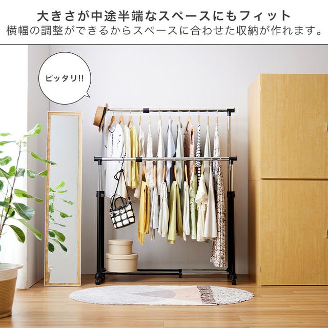 ハンガーラック 幅90cm 縦横伸縮 ダブル ブラック 幅91-124cm×奥行44.5cm×高さ90-156cm SSHD-90BK