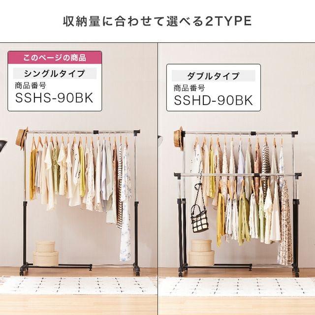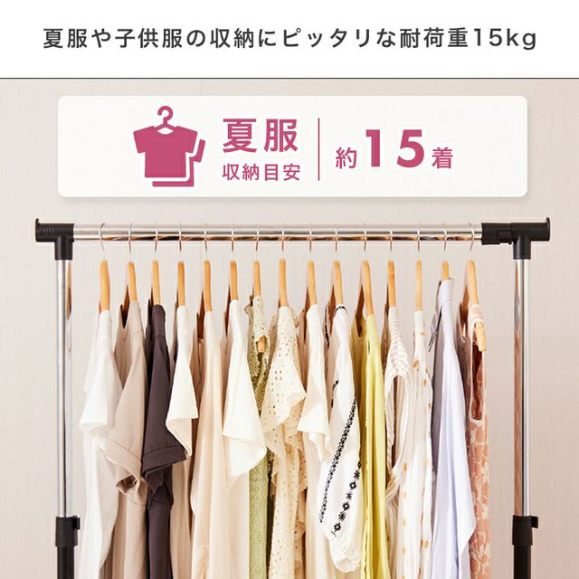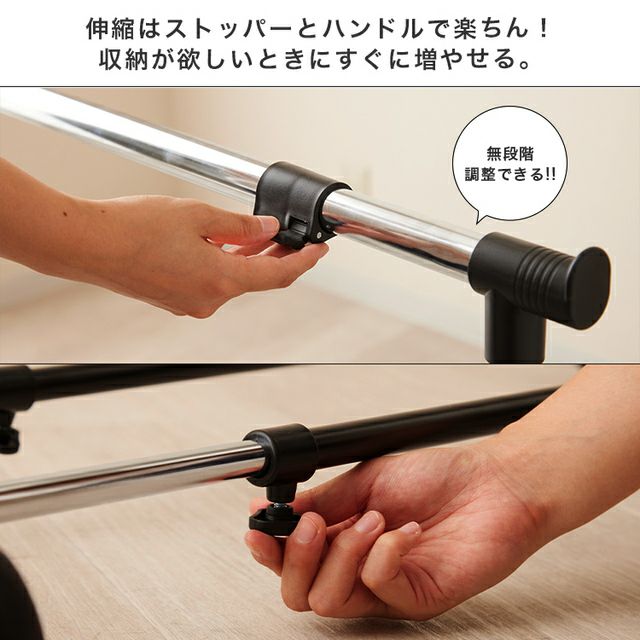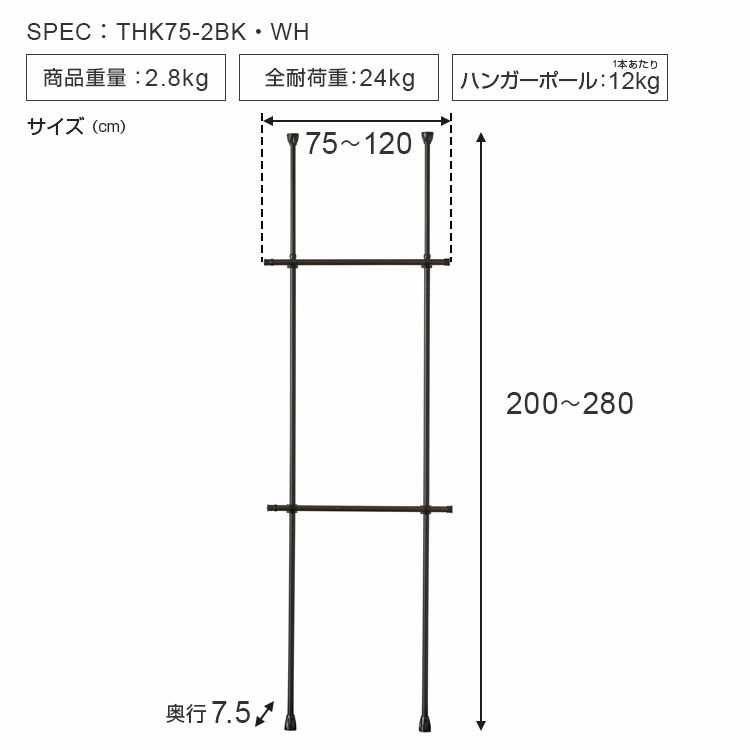 他の画像を見る NEW SALE 突っ張り ハンガーラック 2段 横伸縮 幅75-120×奥行7.5×高さ200-280cm TH75-2 ¥ 3,980 のところ ¥ 3,480 税込 カートに入れる