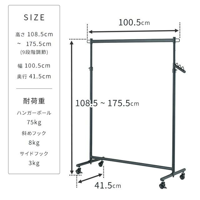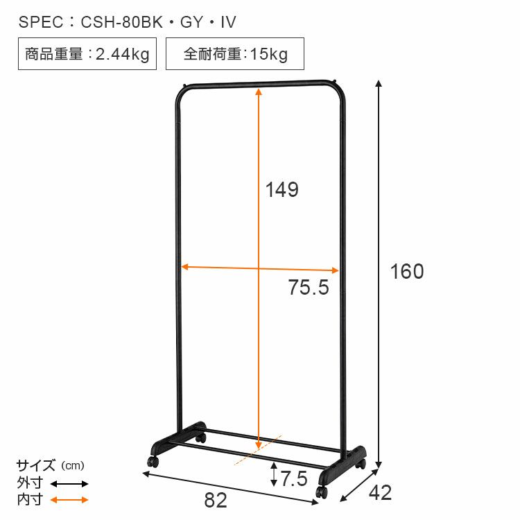 他の画像を見る NEW 【アウトレット品】 ハンガーラック 幅80cm スリム おしゃれ 幅82×奥行42×高さ160.5cm CSH-80BK ブラック ¥ 2,980 のところ ¥ 1,780 税込 カートに入れる