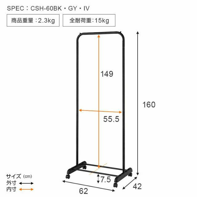 【アウトレット品】 ハンガーラック 幅60cm スリム おしゃれ 幅62×奥行42×高さ160.5cm CSH-60IV アイボリー