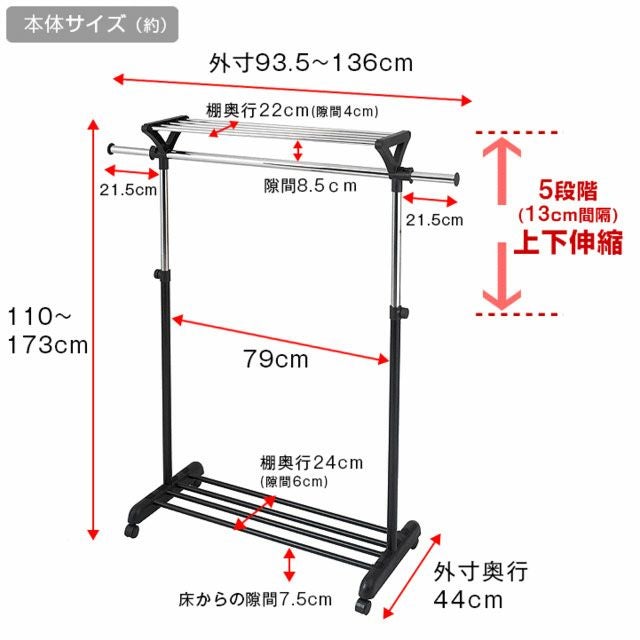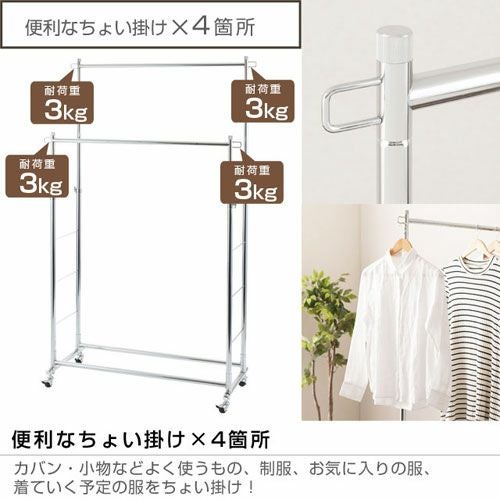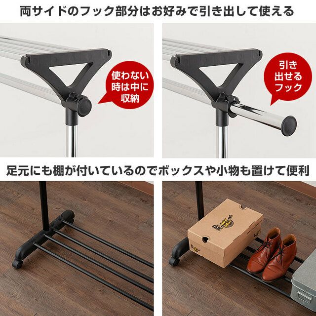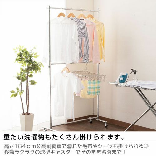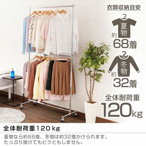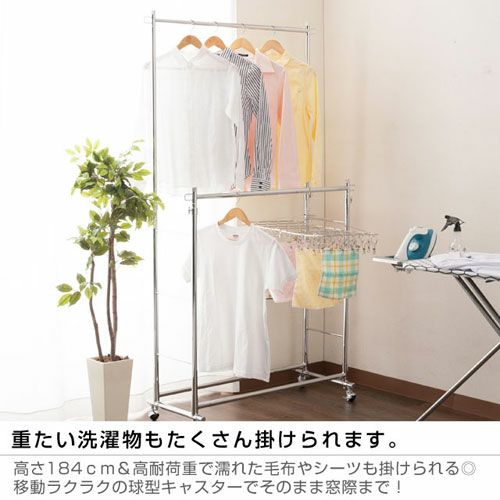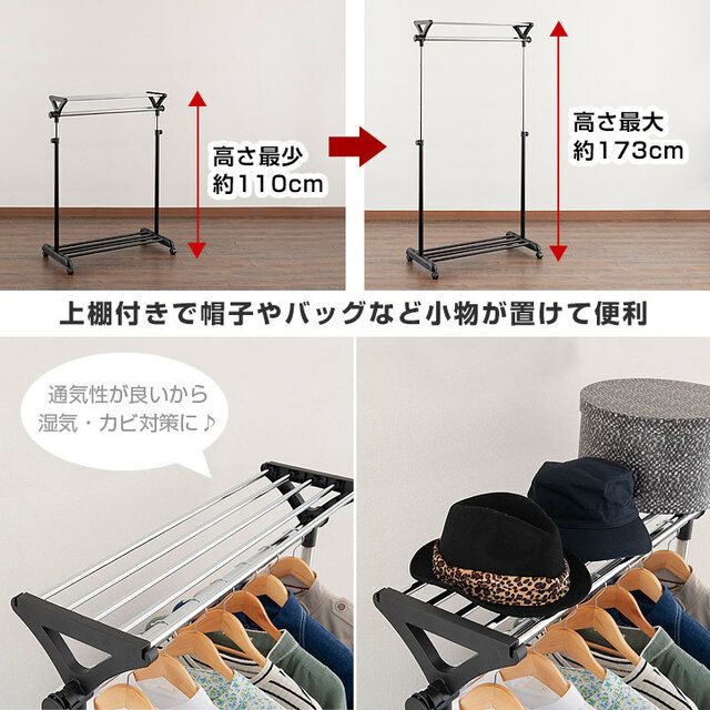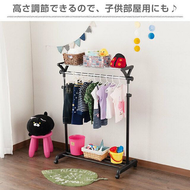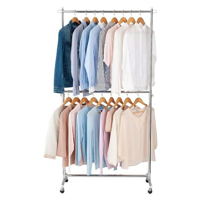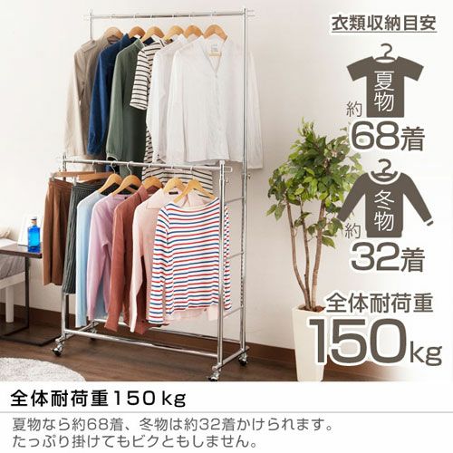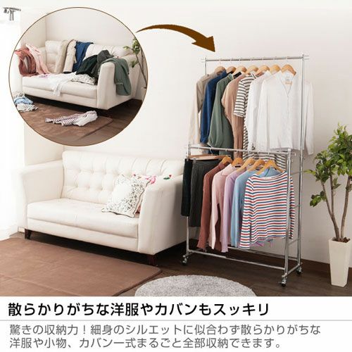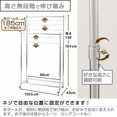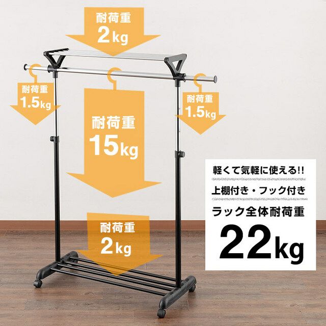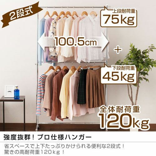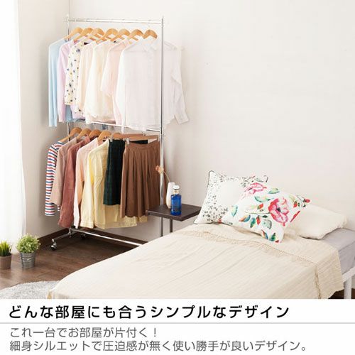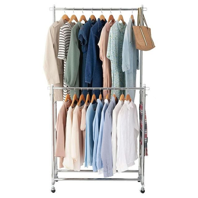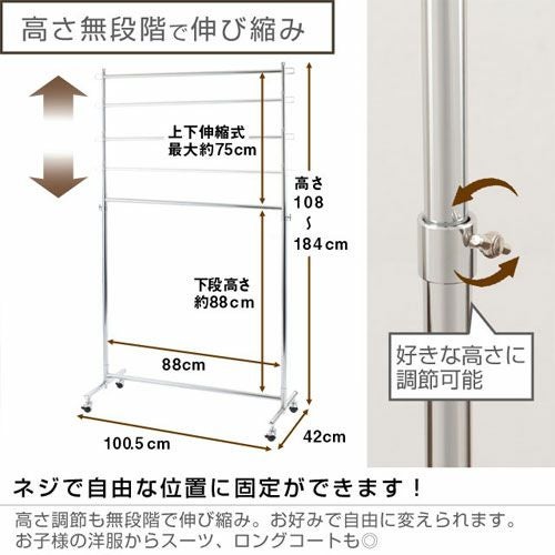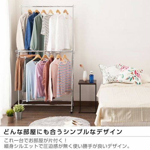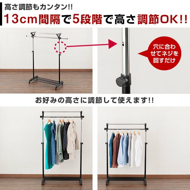 スペースを有効活用し、収納力をアップさせることができるのが「2段式」のハンガーラックです。高さ変更が可能なので、使いやすい高さに調整して使用することもできます。