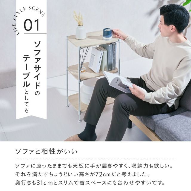 ウッドラック 幅40cm 3段 ルミナススマート スチールラック 幅43.5×奥行31×高さ72cm C12-W403