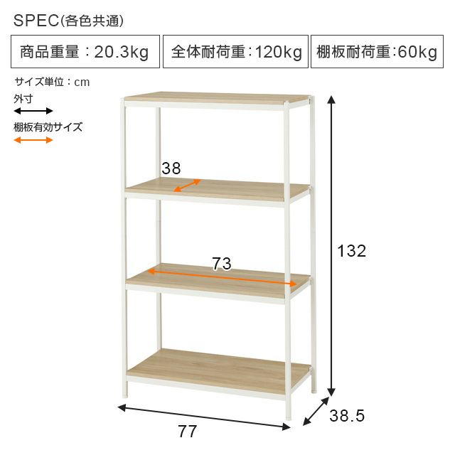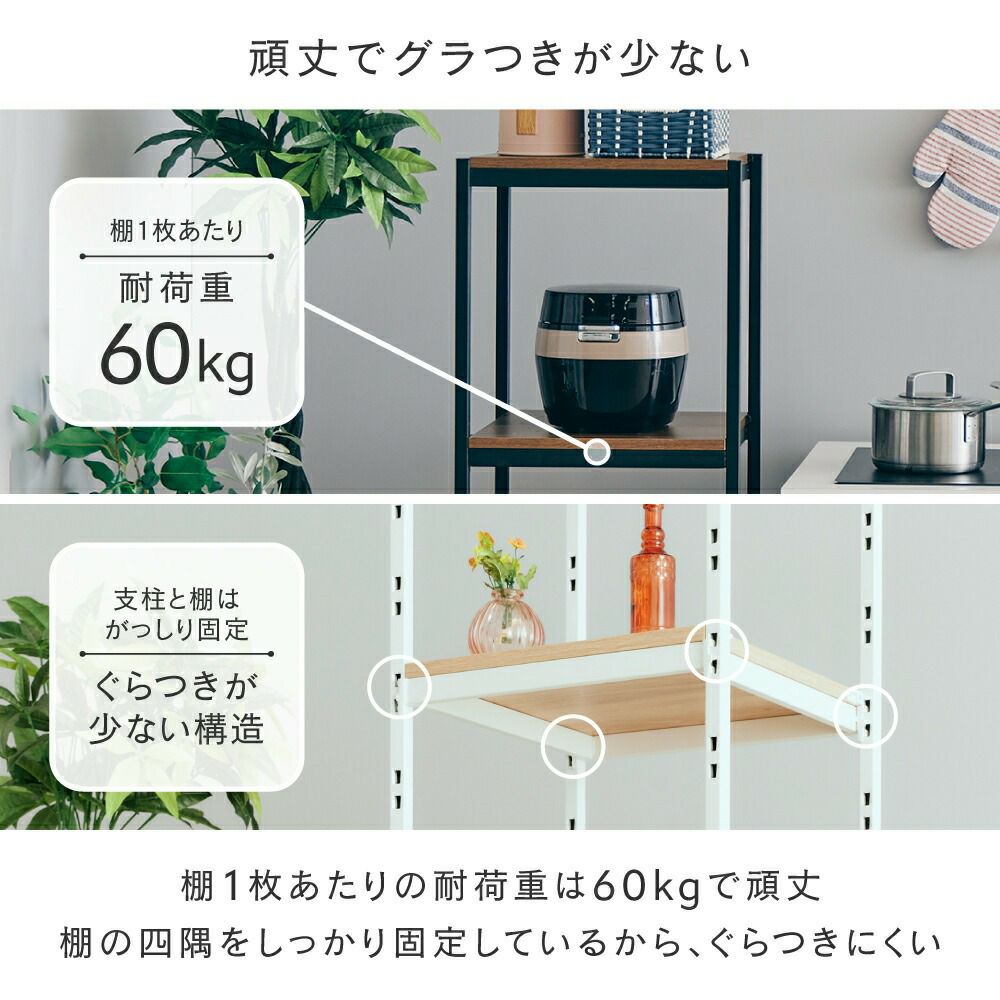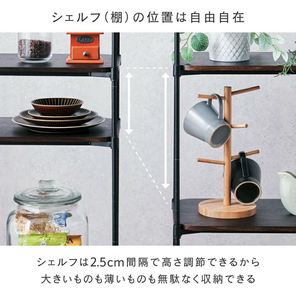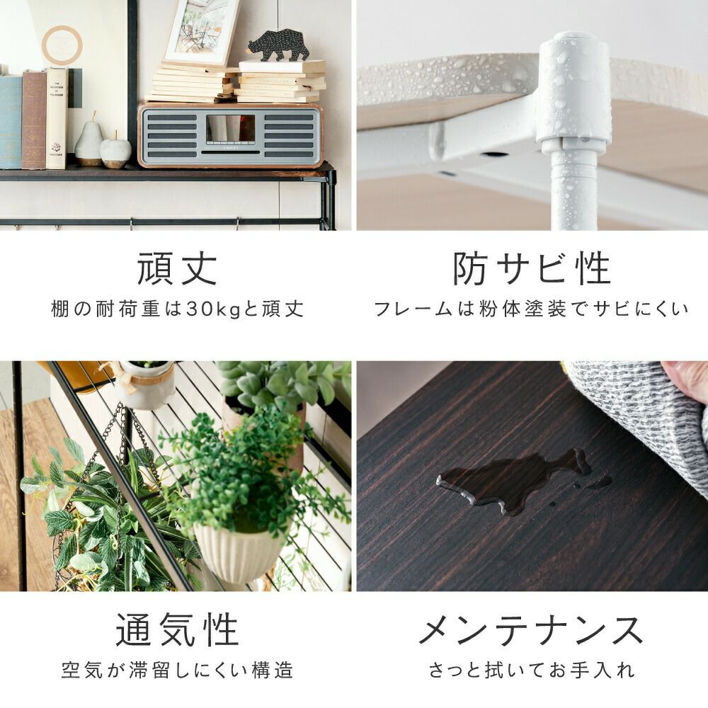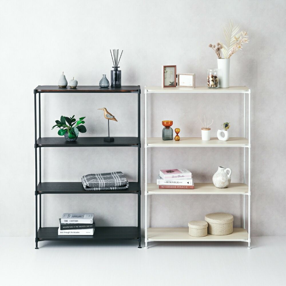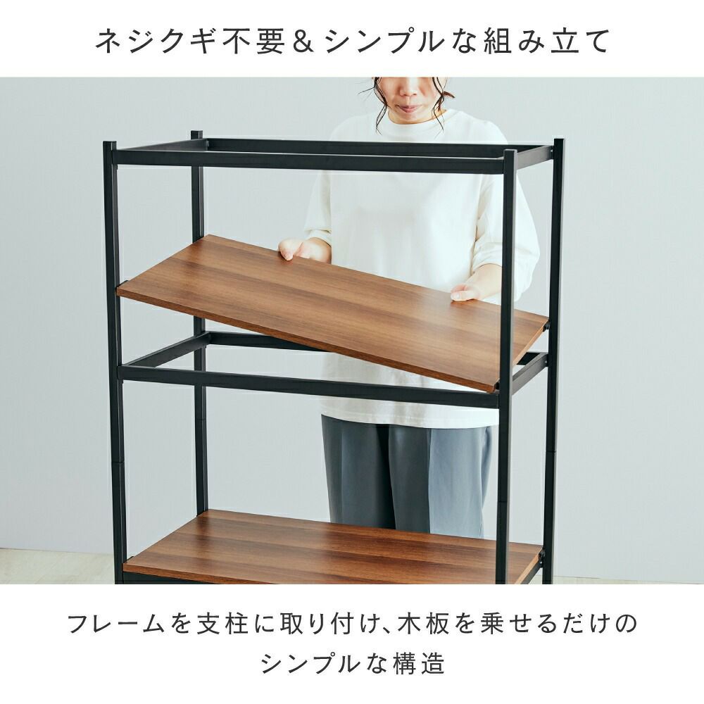 ウッドラック 幅80cm 4段 スチールラック 幅80.5×奥行31×高さ120cm C12-W804